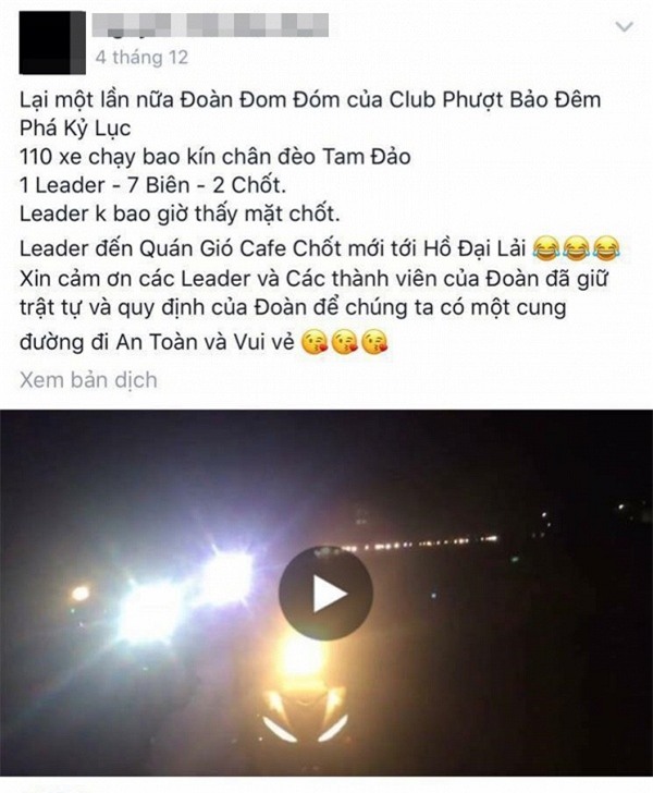“Thân gửi toàn thể các thành viên của club Phượt bão đêm và các bạn.