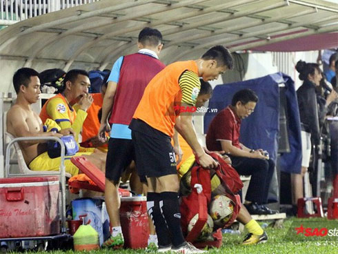Chú cún mừng rỡ khi thấy thủ môn Bùi Tiến Dũng.