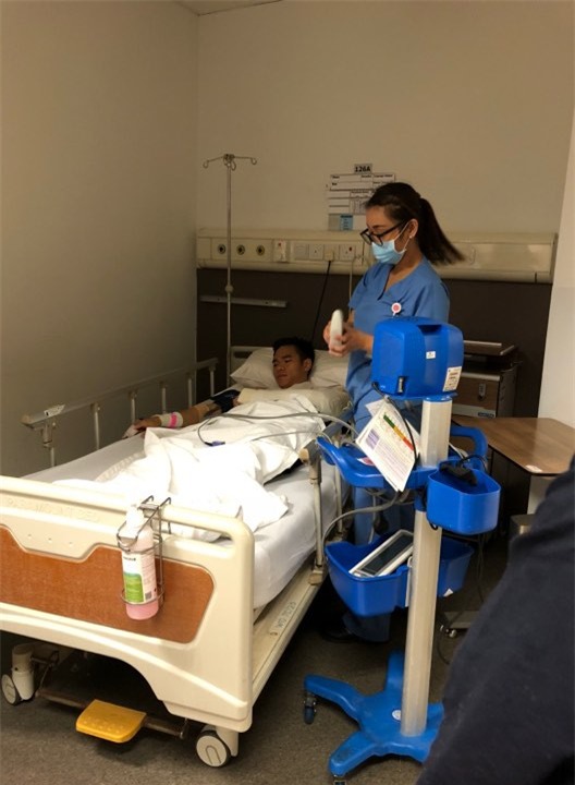 Nguyên Mạnh tại bệnh viện ở Singapore. Ảnh: T.Nga.