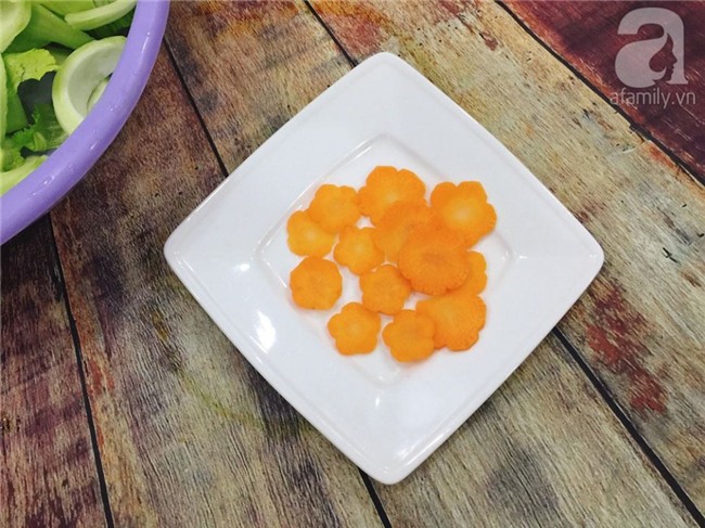 Cà rốt cạo vỏ, thái thành những khoanh tròn dày cỡ 3mm. Ớt bỏ hạt, tỏi bóc vỏ thái lát.