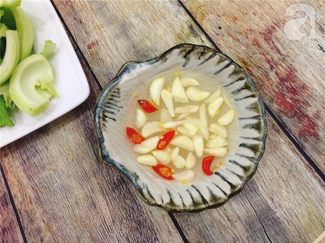 Pha nước mắm chua, cay, mặn, ngọt theo tỉ lệ: 1 bát con nước lọc, 8 thìa canh nước mắm, 6 thìa canh giấm, 4 thìa canh đường, 1 củ tỏi, 2 quả ớt. Nêm nếm điều chỉnh lại theo khẩu vị, nước mắm có vị chua cay mặn ngọt hài hòa là được. Nên pha đậm đà chút cho dưa nhanh ngấm.