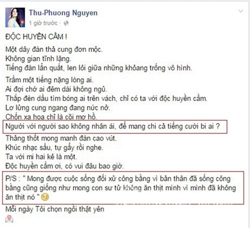 chưa dừng lại, mới đây, Thu Phương lại tiếp tục viết những dòng tâm sự