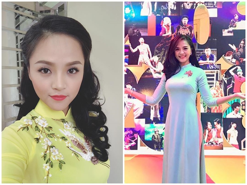Trong trang phục áo dài, cô chỉ cần uốn nhẹ là đủ đằm thắm