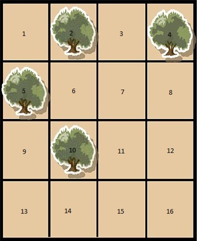 Đề bài: Một người cha có một mảnh đất rộng, trên đó có trồng 4 cây (mảnh đất như trong hình vẽ dưới).