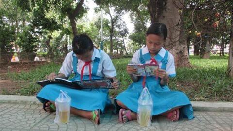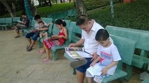 Không chỉ thu hút những người lớn tuổi, thư viện sách ngoài công viên này cũng là một địa chỉ yêu thích của các em nhỏ học sinh |