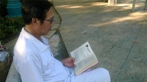 thanh niên này đã chọn thư viện sách trong công viên Phú Lâm là địa