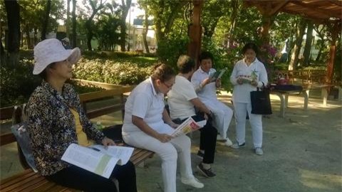 Mỗi buổi sáng sau giờ tập thể dục, các cụ già lại tìm đến kệ sách để chọn đọc những cuốn sách mình yêu thích |