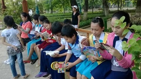 hình mang sách ra công viên phục vụ bạn đọc. Mô hình này đã thu hút đông