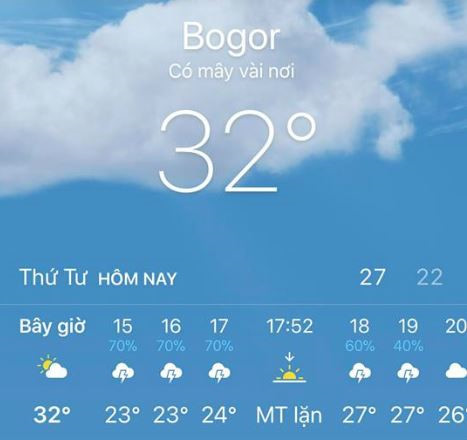 Nhiệt độ tại sân vận động Pakansari (Indonesia).