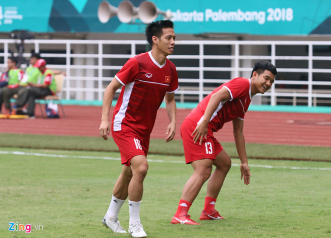 Công Phượng cùng đồng đội đang có tâm lý khá thoải mái trước thềm trận bán kết ASIAD đầu tiên trong lịch sử bóng đá nước nhà. Ảnh: Việt Hùng (từ Indonesia).