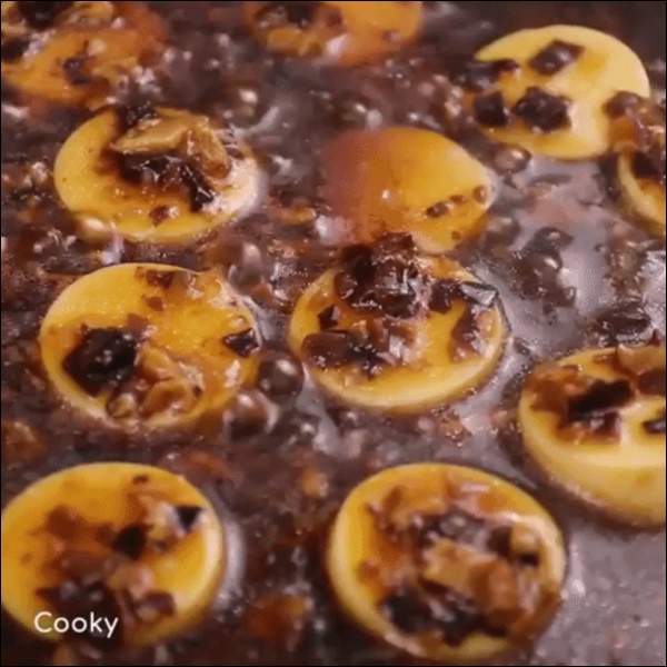 Tiếp theo, bạn thả phần đậu hũ non đã cắt vào chảo và om khoảng 2-3 phút là được. Cuối cùng, rắc 1 ít hành lá đã cắt nhỏ lên và múc đậu cùng nước sốt ra đĩa là xong!