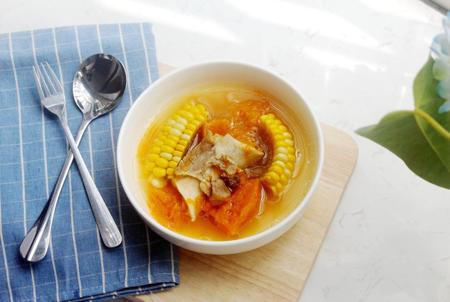 3. Canh xương nấu bí đỏ, ngô ngọt