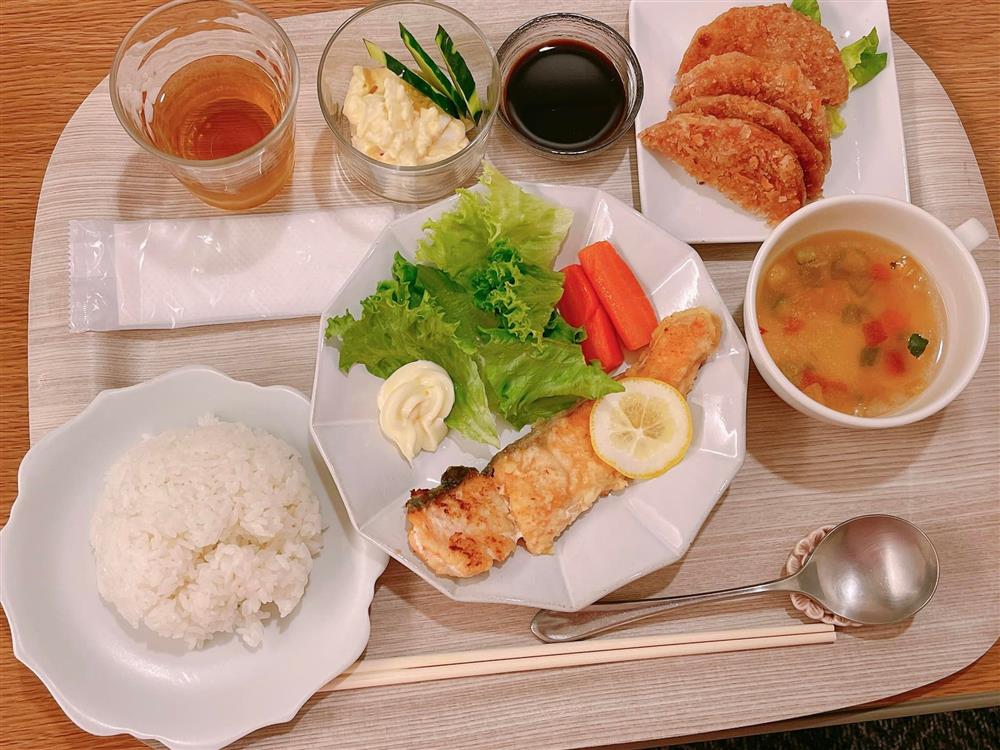 Bữa cơm trong bệnh viện khi sinh ở Nhật hầu như không kiêng cữ bất cứ món gì. Có những món khi ở cữ bên Việt Nam thường sẽ kiêng ăn như bắp cải, măng, đồ lạnh, đồ chua, đồ hải sản,... thì tại đây họ cho ăn tất tần tật, mùa nào thức nấy. Và đặc biệt không sợ bị mất sữa. Cứ ăn ngon, ăn đầy đủ, có sức khoẻ thì sẽ luôn có sữa dồi dào cho con.