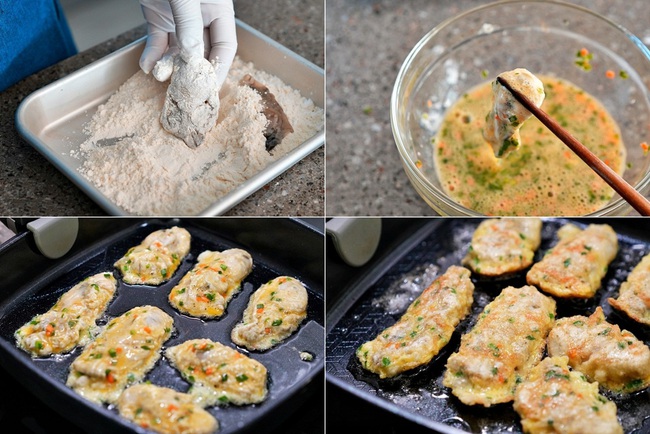 Bước 2: Đổ lượng bột mì ra khay, lăn từng con hàu vào bột mì sao cho bột mì phủ đều hàu. Tiếp đó nhúng hàu qua bát trứng đã đánh tan. Đun nóng lượng dầu ăn thích hợp trong chảo, cho hàu vào chiên ở lửa vừa cho đến khi chín vàng một mặt thì lật mặt, chiên chín mặt còn lại là xong. Khi ăn thì pha gia vị chấm rồi thưởng thức.