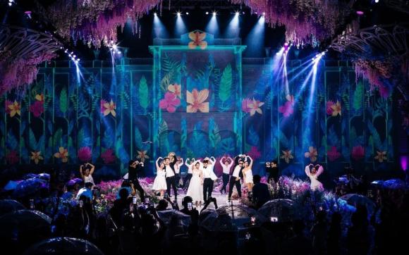 Không chỉ mời nhiều ca sĩ nổi tiếng, trong đó có Đức Phúc mà không gian tiệc cưới này cũng được đầu tư vô cùng hoành tráng. Chính đạo diễn Hoàng Công Cường, người từng nhận trọng trách chỉ đạo sân khấu cho lễ khai mạc và lễ bế mạc của SEA Games 31 là người đứng sau siêu đám cưới này. Toàn bộ hoa được trang trí trong đám cưới là hoa tươi có giá lên tới 13 tỷ đồng. Bên cạnh đó, bộ sư tập siêu xe trong ngày cưới cũng khiến nhiều người phải trầm trồ.