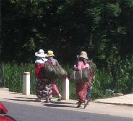 Nhóm người phụ nữ ăn mặc theo kiểu người dân tộc, nói tiếng Kinh lơ lớ đi bộ khắp mọi nơi, gặp ai đi một mình thì nhào tới hỏi đường.