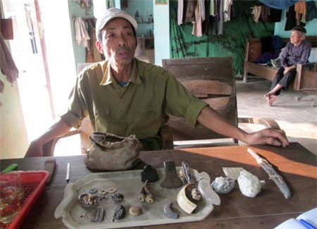 Ông Sơn giải thích về những đồ vật quý gia truyền của tổ tiên