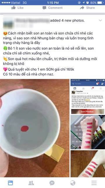 Theo như nhiều người chia sẻ thì son nổi lên trên sẽ chứa hàm lượng chì thấp, trong khi son chìm xuống đáy cốc thì có lượng chì cao, ảnh hưởng xấu đến sức khỏe người dùng.