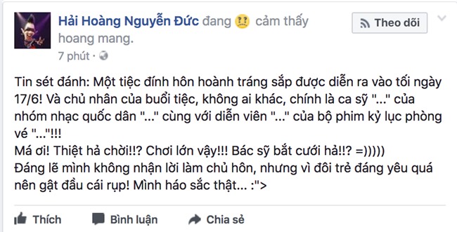 Mới đây trên trang cá nhân, MC Hoàng