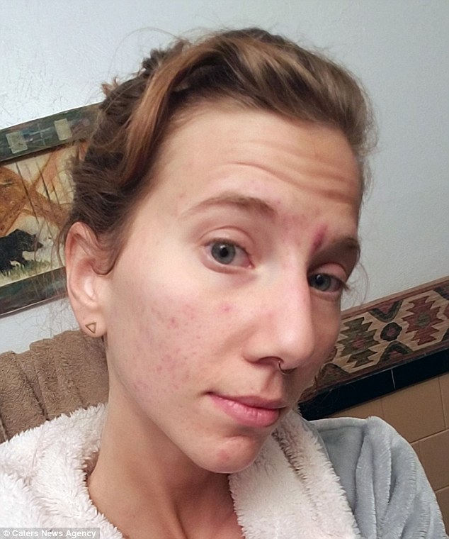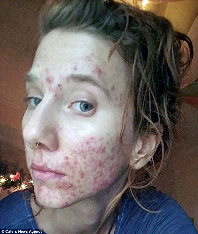 Khuông mặt Julia được cho là đầy mụn trước khi uống nước tiểu. (Ảnh Dailymail)