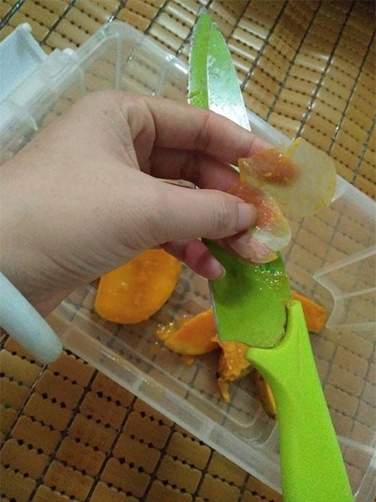 ![]() Lớp vỏ lạ màu trắng bên trong quả xoài đang khiến nhiều người vô cùng hoang mang.