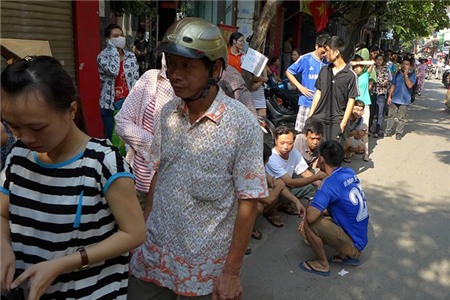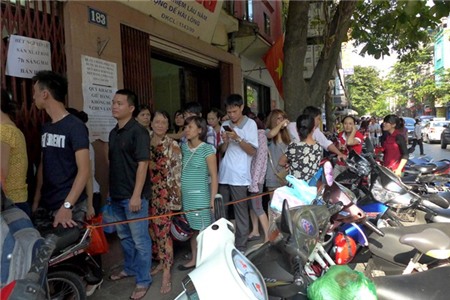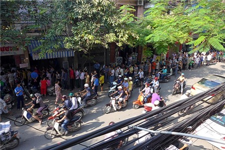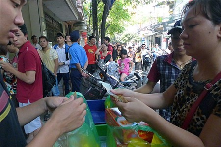 Có cả dịch vụ xếp hàng thuê với giá cả trăm ngàn đồng một lượt. Các xe mang thùng lớn thùng bé đến chờ có hàng là mang đi.