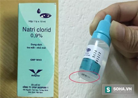 Trên bao bì nhãn mác ngoài sản phẩm ghi rõ số lô sản xuất 9414, ngày sản xuất 26/11/2014, hạn sử dụng tới 26/11/2017 nhưng đã xuất hiện nhiều vẩn đục lẫn trong nước nhỏ mắt.