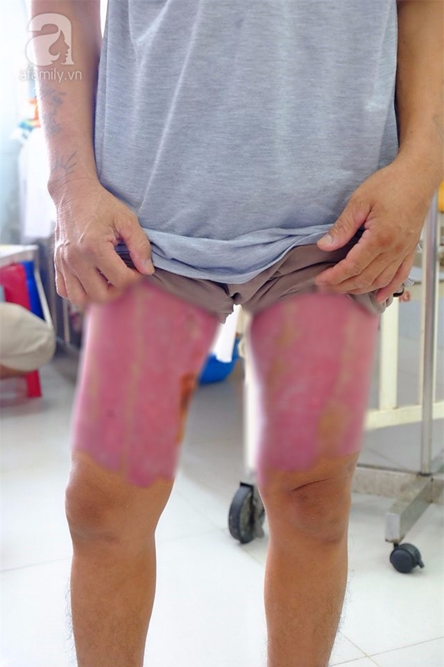 Sau ca mổ ghép da, tình trạng bệnh nhân khá ổn định, vết thương lành tốt. Dự kiến có thể xuất viện trong tuần tới. Tại giường bệnh, người cha với hai mảng đùi đỏ hồng nhưng khuôn mặt nhẹ nhõm, vì con đang dần khỏe lại.