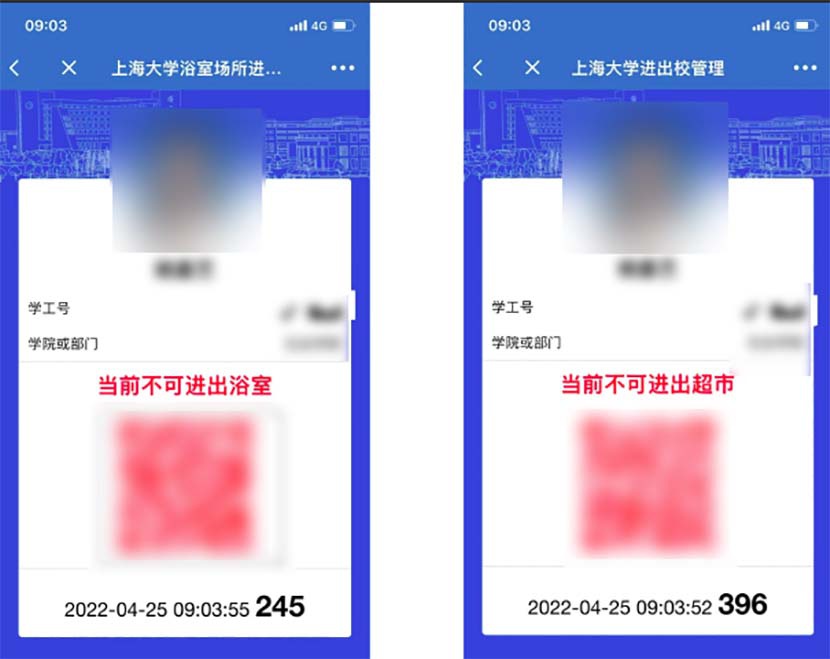 Mã QR sẽ chuyển màu xanh vào thời gian nhất định trong ngày, tức lúc đó, sinh viên được vào siêu thị hoặc phòng tắm công cộng. Mỗi ngày, mã phòng tắm chuyển xanh trong 5,5 tiếng. Nhờ đó, cuối cùng, sinh viên cũng có thể tắm gội tử tế.