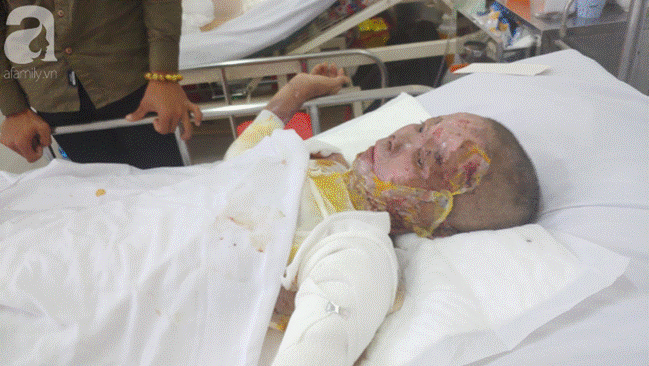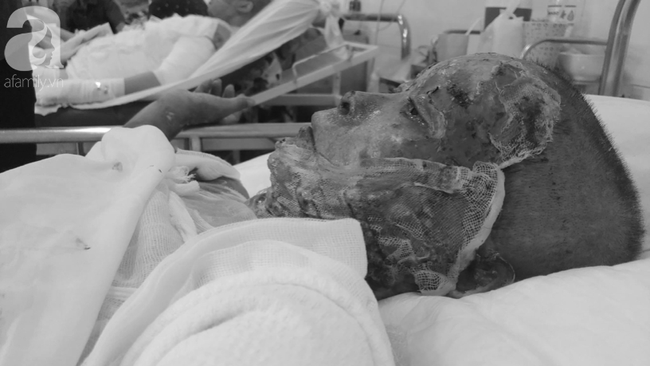 Khắp cơ thể người phụ nữ như bị "nướng chín". Những mảng thịt nát nhừ trên khuôn mặt kèm đôi mắt sâu tuyệt vọng của chị khiến người chứng kiến không khỏi rùng mình.