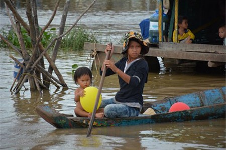 “Thấy quả bóng bay ở trên sông, đứa trẻ khóc ngằn ngặt, người mẹ cố chèo thuyền theo làm cái ghe cũ chao đảo bị nước tràn vào suýt lật nhào…”. Hình ảnh những đứa trẻ nheo nhóc nhìn thấy đồ chơi như bắt được vàng đã ám ảnh chúng tôi khi một lần đặt chân đến Biển Hồ-khu người Việt sinh sống ở Campuchia.