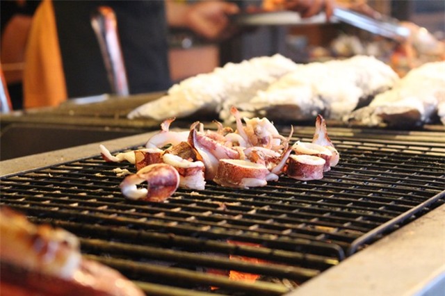3. Mực là một trong những hải sản được bán nhiều trên đường phố cũng như nhà hàng Thái. Người ta có thể chế biến mực thành nhiều món, song dễ gặp nhất là mực nướng muối ớt và gỏi miến mực. Giá một đĩa mực nướng từ 30-50 bath.