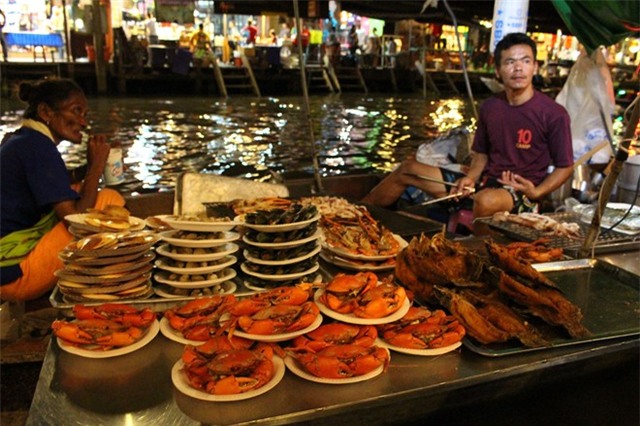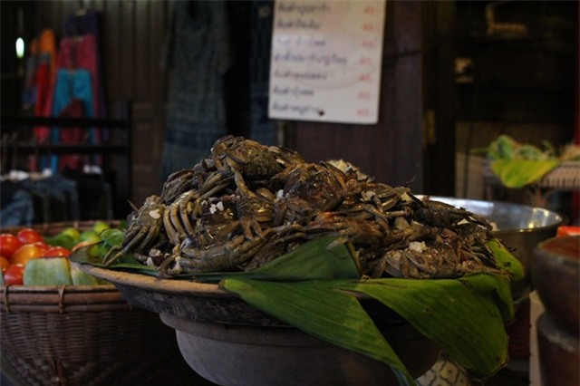 8. Ba khía và món gỏi ba khía của chợ nổi Amphawa (Bangkok) có giá 100 bath một phần.
