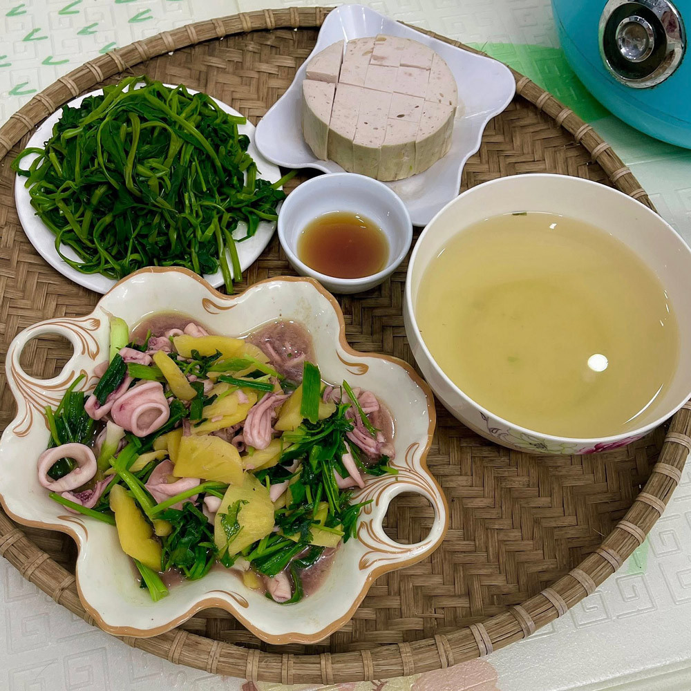 Sau này, dù nhà bớt khó khăn nhưng việc ăn uống đơn giản đã trở thành thói quen của gia đình Vui. Mâm cơm nhà cô chỉ quanh quẩn những món thịt luộc, rau luộc, trứng luộc...