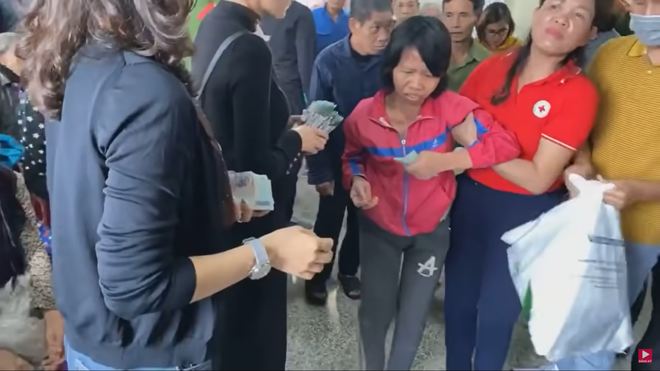 Thậm chí, khi thấy mọi người xung quanh quá ồn ào, lộn xộn, chưa chịu phát tiền nhanh cho bà con, Thủy Tiên còn nói lớn để một mình đi vào đám đông: "Mọi người đi ra hết giùm em đi!".