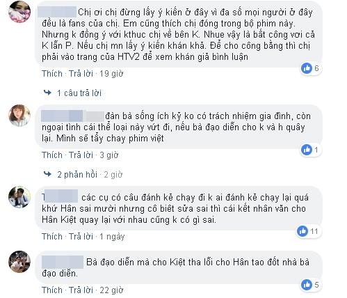 Chia sẻ này của nữ diễn viên ngay lập tức vấp phải sự phản đối của người hâm mộ Gạo nếp gạo tẻ. Đa số ý kiến đều không thể chấp nhận cái kết viên mãn dành cho Hân sau khi cô đã gây ra quá nhiều lỗi lầm: coi thường Kiệt, tệ bạc với cha chồng, hỗn láo với cha mẹ, ngoại tình...
