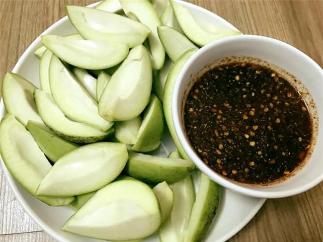 Xoài bao tử chấm mắm Thái đang là món ăn vặt gây sốt. |