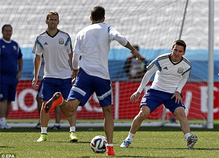 Messi cùng đồng đội tập luyện trước trận gặp Thuỵ Sỹ |