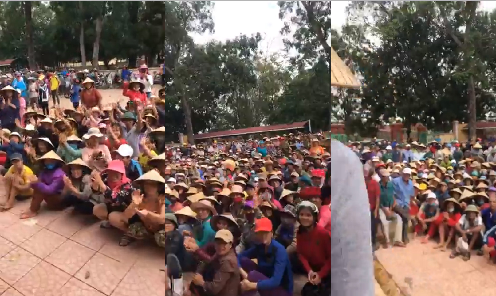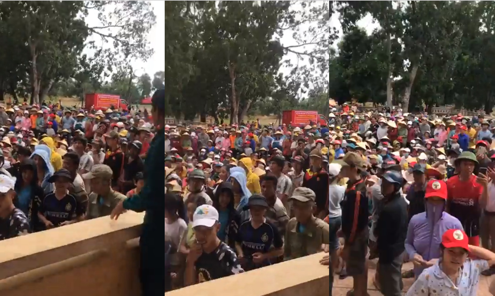 Hàng ngàn người ngồi chờ từ sớm để nhận tiền viện trợ từ đoàn của Thủy Tiên