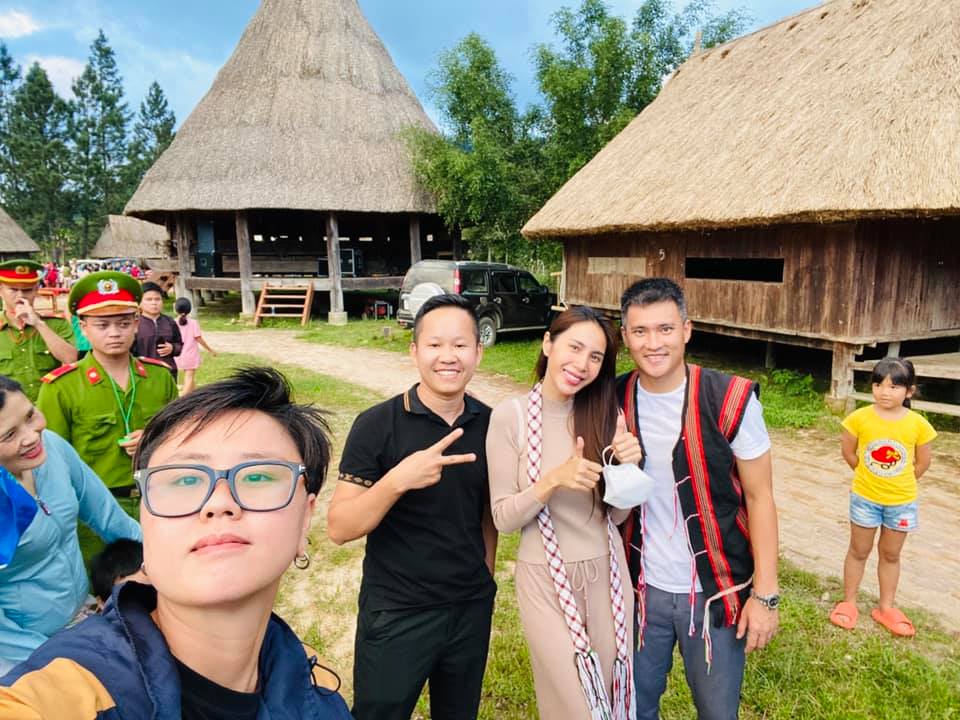 'Chồng tui còn theo tui không nhiều ngày bằng 2 bạn ấy, được dân địa phương tặng áo và khăn thổ cẩm 2 vợ chồng mặc luôn'