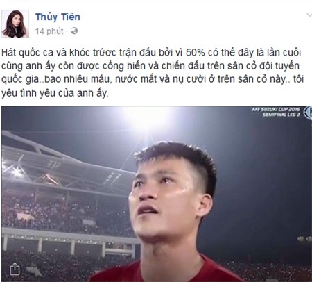 được Thủy Tiên đăng tải đúng lúc đội tuyển Việt Nam đang thi đấu trên