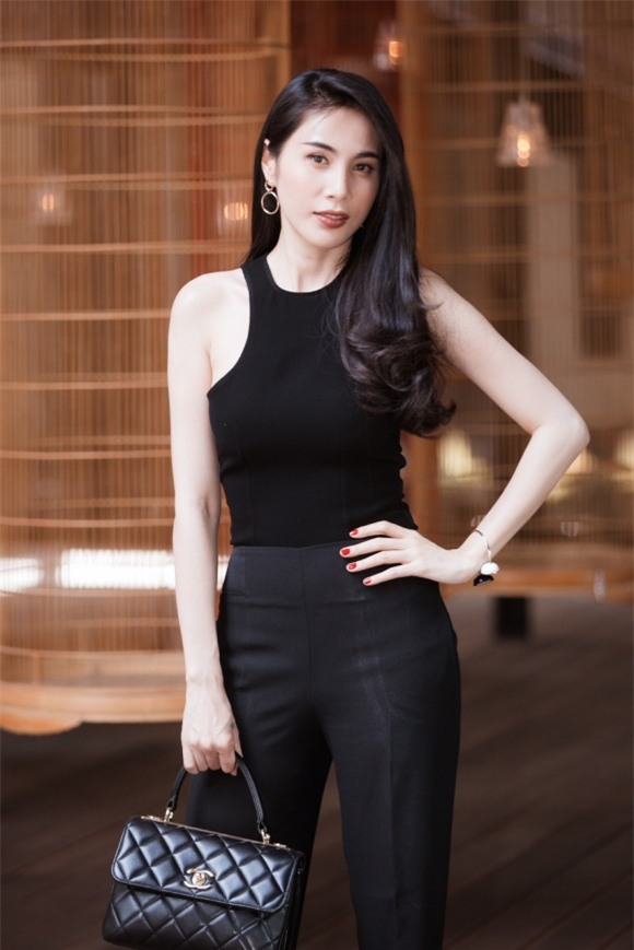 Thuỷ Tiên mặn mà và sang trọng với crotop đen cùng quần ống loe và túi Chanel trăm triệu