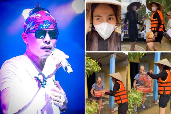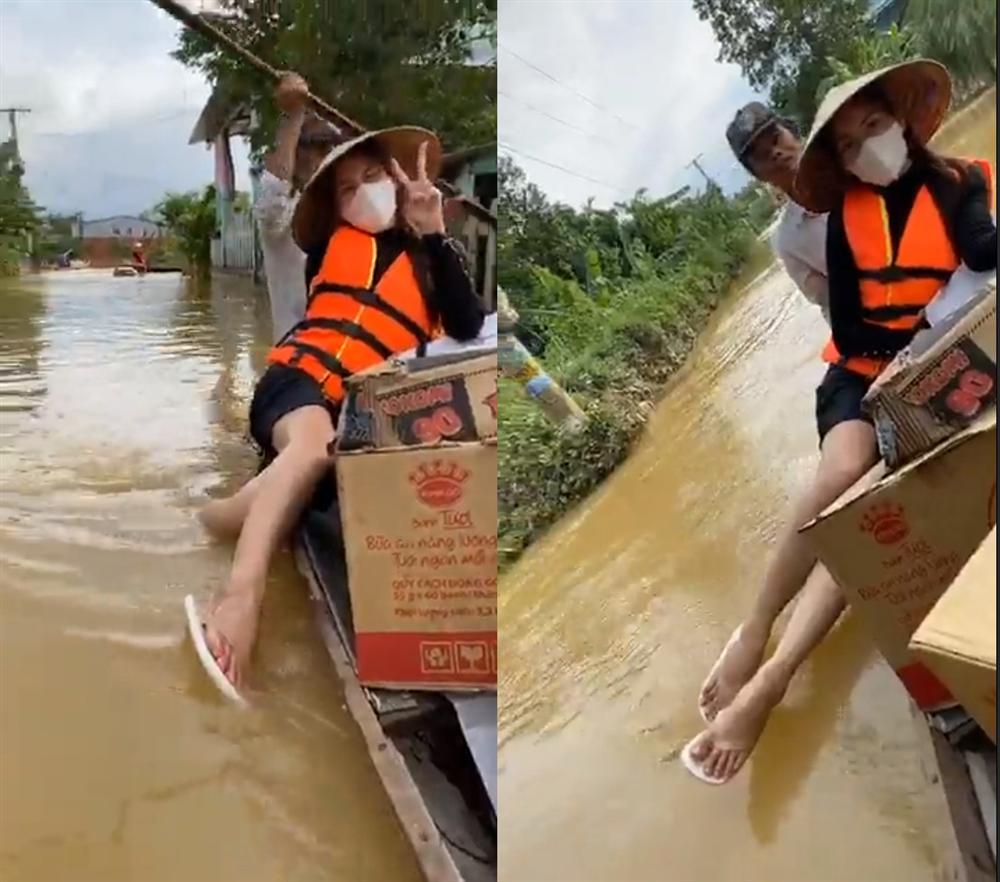 Đi vào vùng ngập lụt, nước chảy xiết, Thủy Tiên mạnh dạn xuống nước, tự tay đẩy ghe chở đồ tiếp tế vào tận từng nhà một. Mặc dù có những lúc, đường dưới chân gập ghềnh, nước chảy mạnh khiến cô loạng choạng, nữ ca sĩ vẫn vui cười, cẩn thận chăm chút cho từng phần ăn trên ghe.