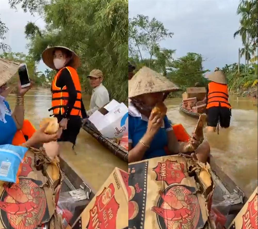 Thủy Tiên tự tay đẩy ghe vào vùng ngập lụt, tiết lộ lý do livestream phát đồ tiếp tế cho người dân-1Thủy Tiên tự tay đẩy ghe vào vùng ngập lụt, tiết lộ lý do livestream phát đồ tiếp tế cho người dân-2
