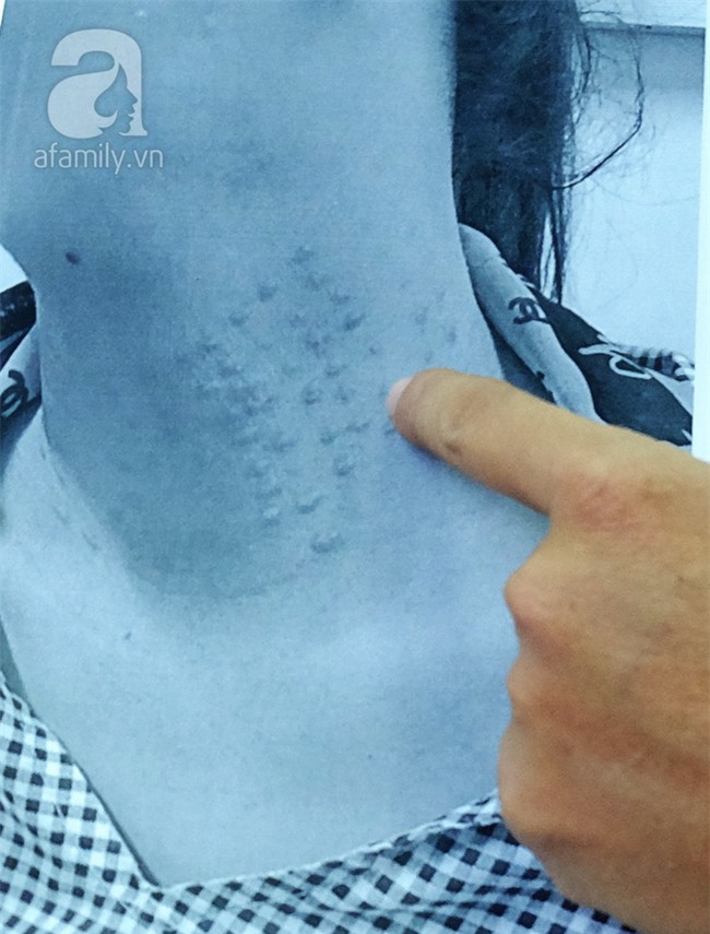 Hai tháng sau khi tiêm chất làm trắng da, thay vì trắng lên và mịn màng, cổ nạn nhân bị viêm nhiễm, da xuất hiện nhiều nốt sần sùi như da cá sấu.