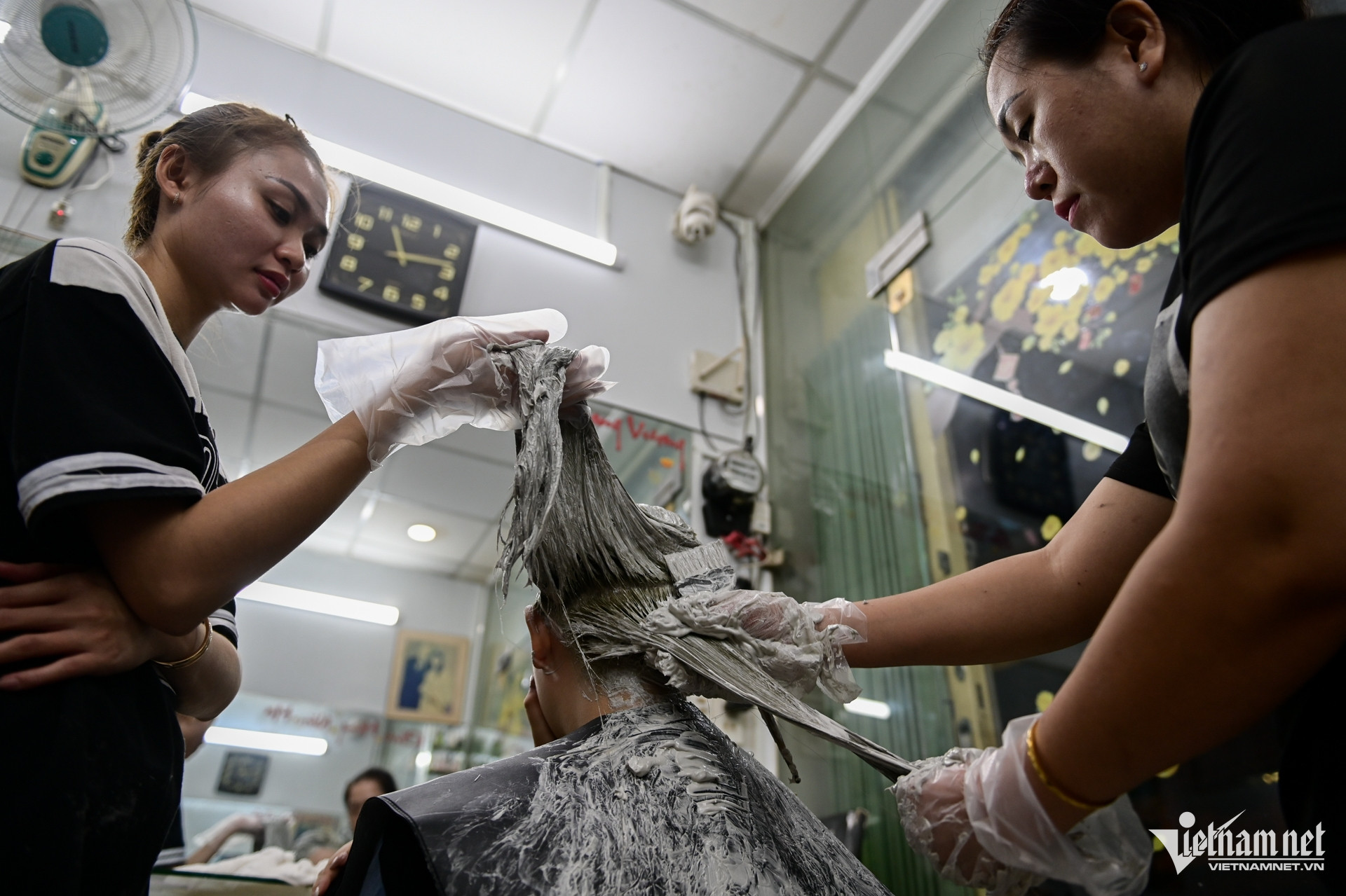 Với những bộ tóc tẩy và nhuộm, giá trung bình khoảng 1,5 triệu đồng và cần thực hiện trong thời gian ít nhất là 3 tiếng. “Chuyện chờ đợi lâu để làm tóc là điều không thể tránh khỏi. Chỉ cần đẹp, tôi và các chị em đều sẵn lòng chờ đợi”, chị Bối Bối cho biết. Hôm nay, nữ khách hàng sẽ phải chờ đến 2h sáng để hoàn thiện bộ tóc nâng tone và nhuộm màu xám khói.