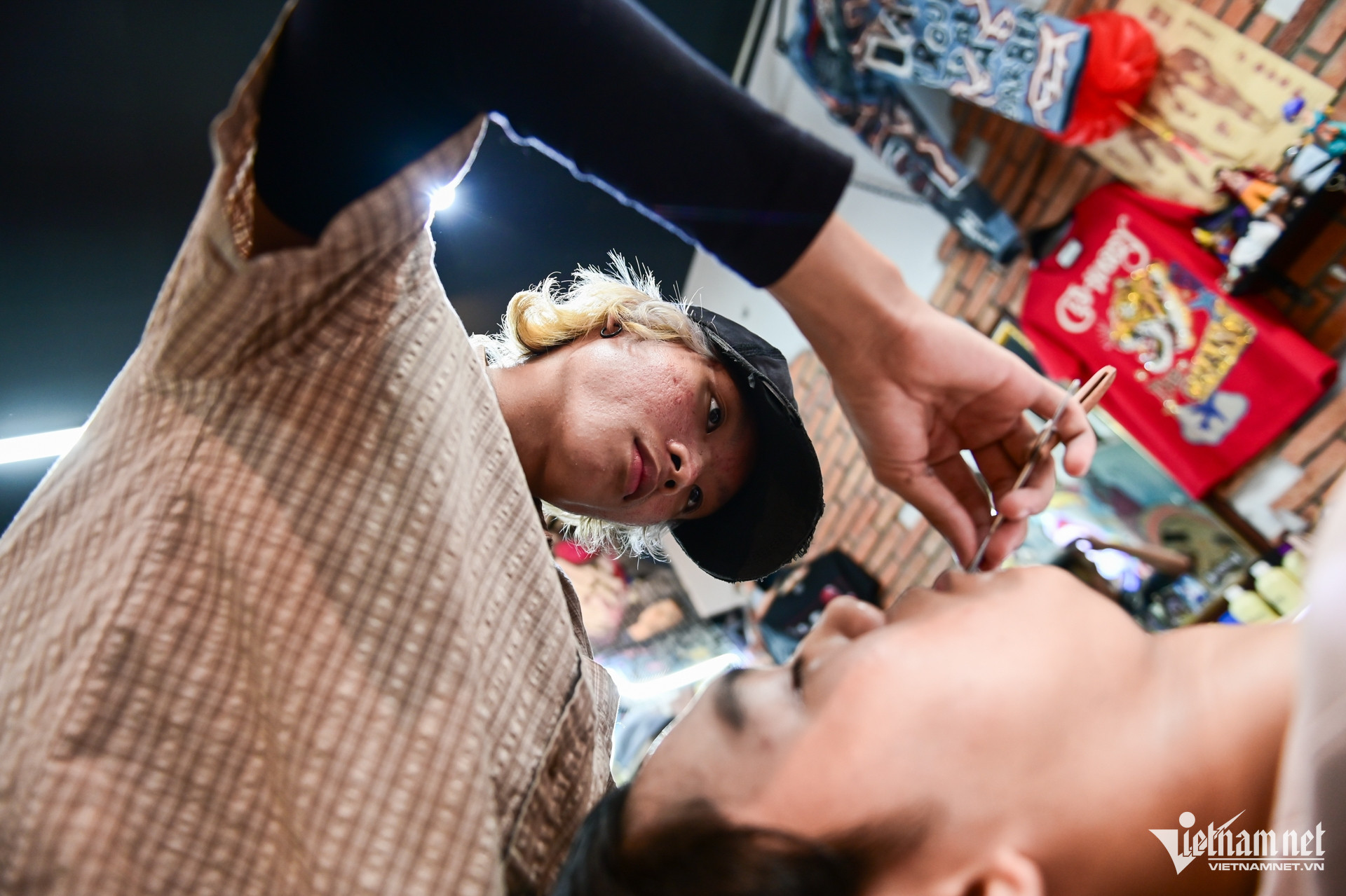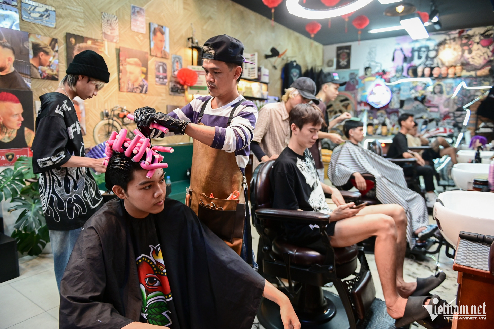 Tiệm tóc nam của anh Thiên Vũ (quận Tân Bình) luôn kín các ghế ngày cận Tết. "Mọi năm, từ đầu tháng Chạp, lượng khách đã bắt đầu đông. Nhưng năm nay phải một tuần trở lại đây khách hàng mới đổ về. Lượng khách tăng 100% so với ngày thường, vào cuối tuần này có thể tăng lên 150%", anh Vũ chia sẻ.