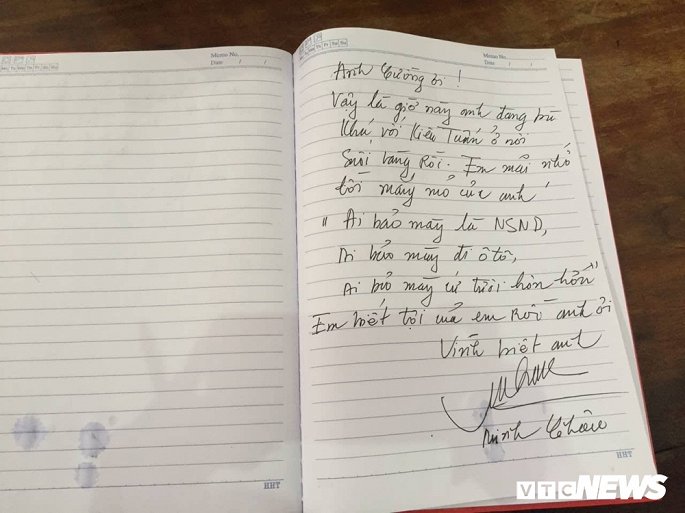NSND Minh Châu vừa khóc vừa viết trong sổ tang "Anh Cường ơi, em biết tội của em rồi" khi tới tiễn đưa NSƯT Bùi Cường về nơi an nghỉ cuối cùng sáng 7/8.