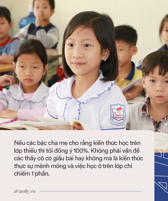 Nếu các bậc cha mẹ cho rằng kiến thức học trên lớp thiếu thì tôi đồng ý 100%. Không phải vấn đề các thầy cô có giấu bài hay không mà là kiến thức thực sự mênh mông và việc học ở trên lớp chỉ chiếm 1 phần. Vì vậy con cần bổ sung như này: