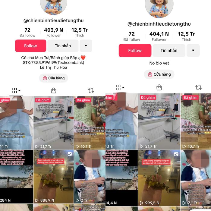 Một trong 2 trang TikTok của mẹ Bắp đã gỡ thông tin số tài khoản ngân hàng